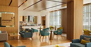 Maiya Lounge предлагает выбор со всего мира, специальные горячие и холодные напитки и разнообразные лёгкие блюда, включая выпечку, салаты, сэндвичи и фрукты.